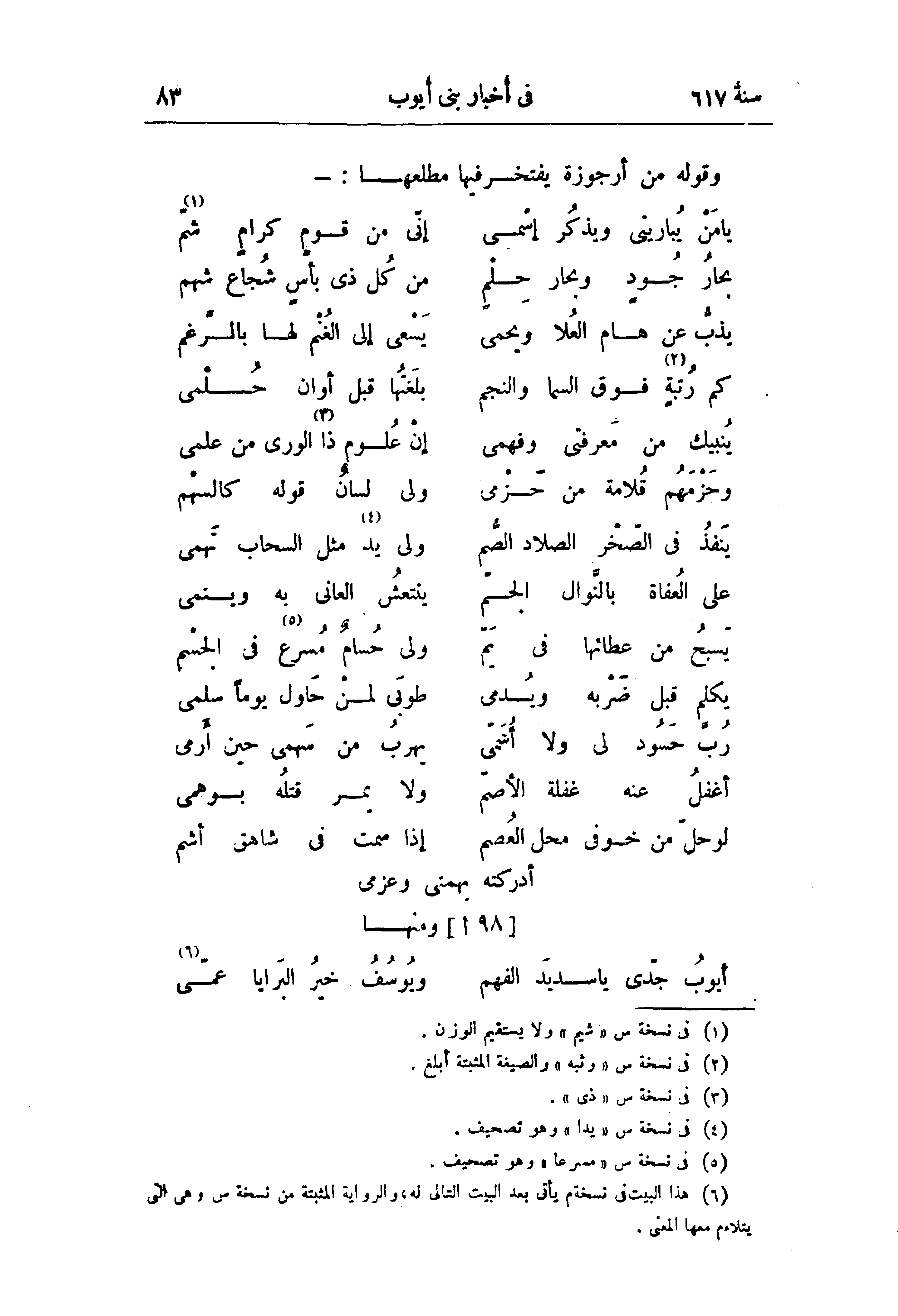 أيوب جدّى يا سديد الفهم ... ويوسف خير البرايا عمّى (¬6)
