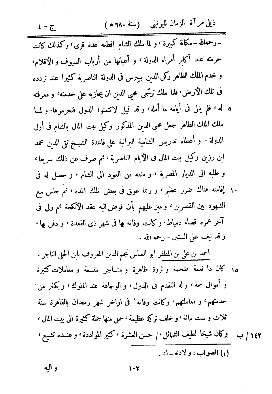 أحمد بن علي بن المظفر أبو العباس نجم الدين المعروف بابن الحلى التاجر. كان ذا نعمة ضخمة وثروة ظاهرة ومتاجرة متسعة ومعاملات كثيرة وأموال جمة، وله التقدم في الدول، والوجاهة عند الملوك، ويكثر من خدمتهم، ومعاملتهم، وكانت وفاته في أواخر شهر رمضان بالقاهرة سنة ثلاث وست مائة، وخلف تركة عظيمة، حمل منها جملة كثيرة إلى بيت المال، وكان شيخاً لطيف الشمائل، حسن العشرة، كثير المواددة، وعنده تشيع،