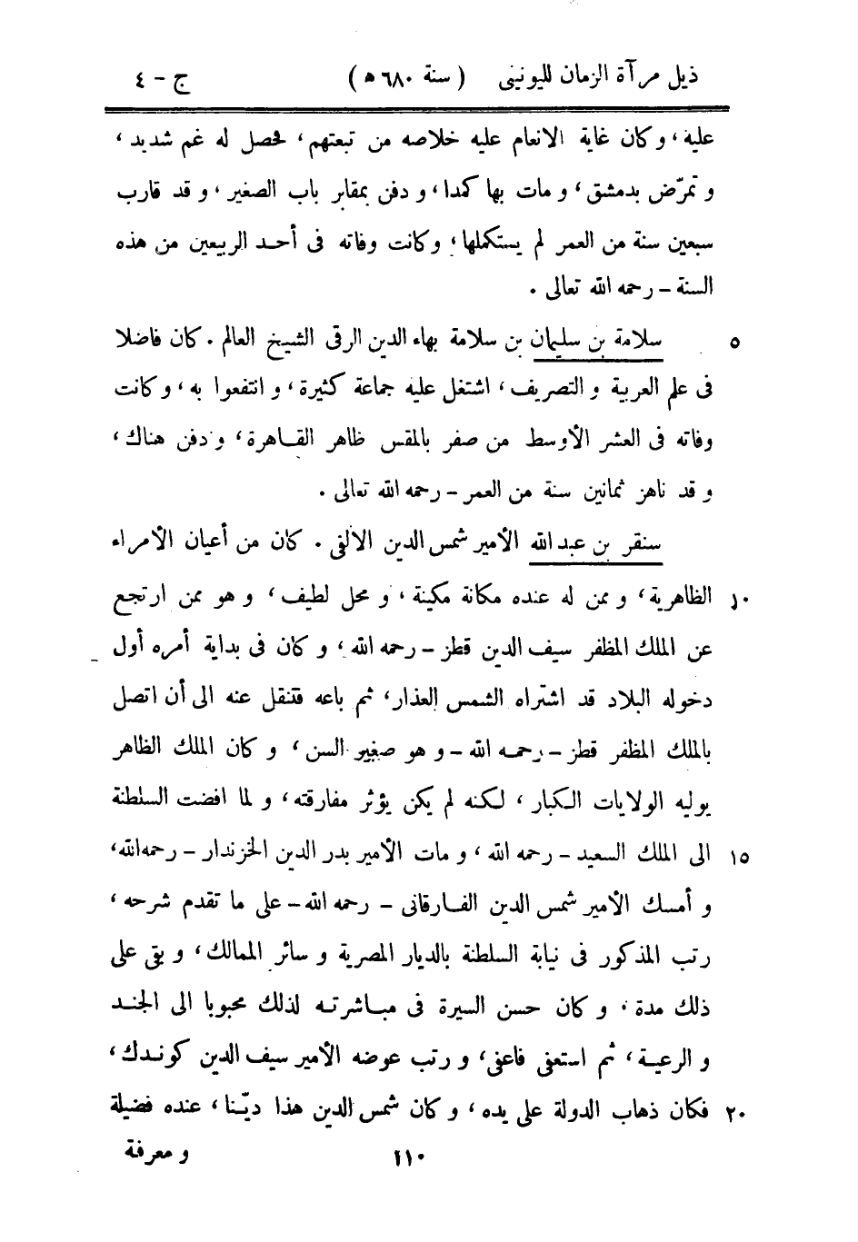 سلامة بن سليمان بن سلامة بهاء الدين الرقى الشيخ العالم. كان فاضلاً في علم العربية والتصريف، اشتغل عليه جماعة كثيرة، وانتفعوا به، وكانت وفاته في العشر الأوسط من صفر بالمقس ظاهر القاهرة، ودفن هناك، وقد ناهز ثمانين سنة من العمر رحمه الله تعالى.
