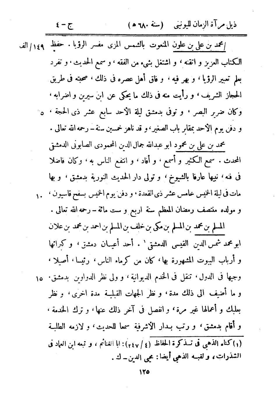 محمد بن علي بن محمود أبو عبد الله جمال الدين المحمودي الصابوني الدمشقي المحدث. سمع الكثير وأسمع، وأفاد، وانتفع الناس به، وكان فاضلاً في فنه، نبيهاً عارفاً بالشيوخ، وتولى دار الحديث النورية بدمشق، وبها مات في ليلة الخميس خامس عشر ذى القعدة، ودفن يوم الخميس بسفح قاسيون، ومولده منتصف رمضان المعظم سنة أربع وست مائة رحمه الله تعالى.