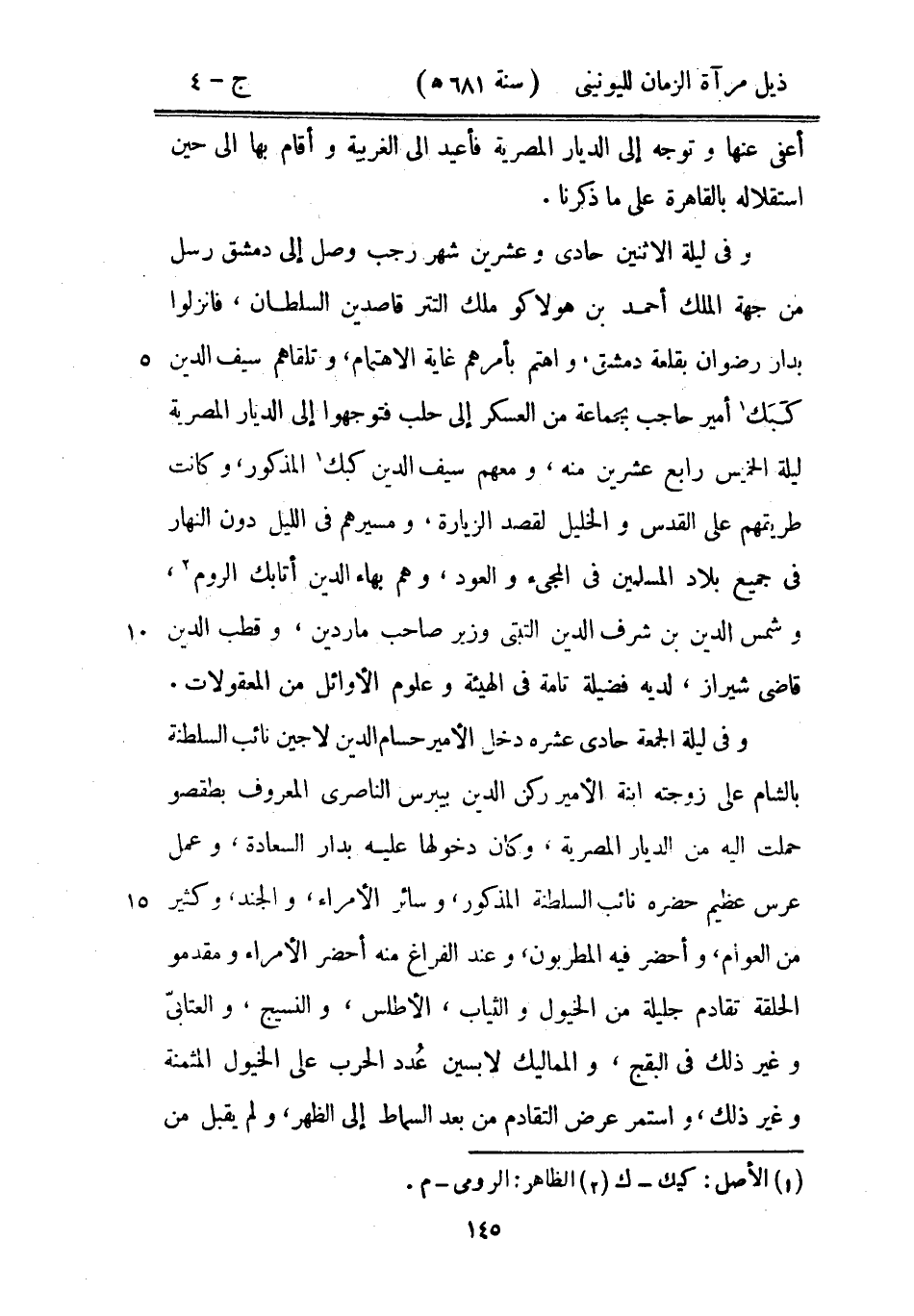 وفي ليلة الجمعة حادي عشره دخل الأمير حسام الدين لاجين نائب السلطنة بالشام على زوجته ابنة الأمير ركن الدين بيبرس الناصري المعروف بطقصو حملت إليه من الديار المصرية، وكان دخولها عليه بدار السعادة، وعمل عرس عظيم حضره نائب السلطنة المذكور، وسائر الأمراء، والجند، وكثير من العوام، وأحضر فيه المطربون، وعند الفراغ منه أحضر الأمراء ومقدمو الحلقة تقادم جليلة من الخيول والثياب، الأطلس والنسيج، والعتابى وغير ذلك في البقج، والمماليك لابسين عدد الحرب على الخيول المثمنة وغير ذلك، واستمر عرض التقادم من بعد السماط إلى الظهر، ولم يقبل من