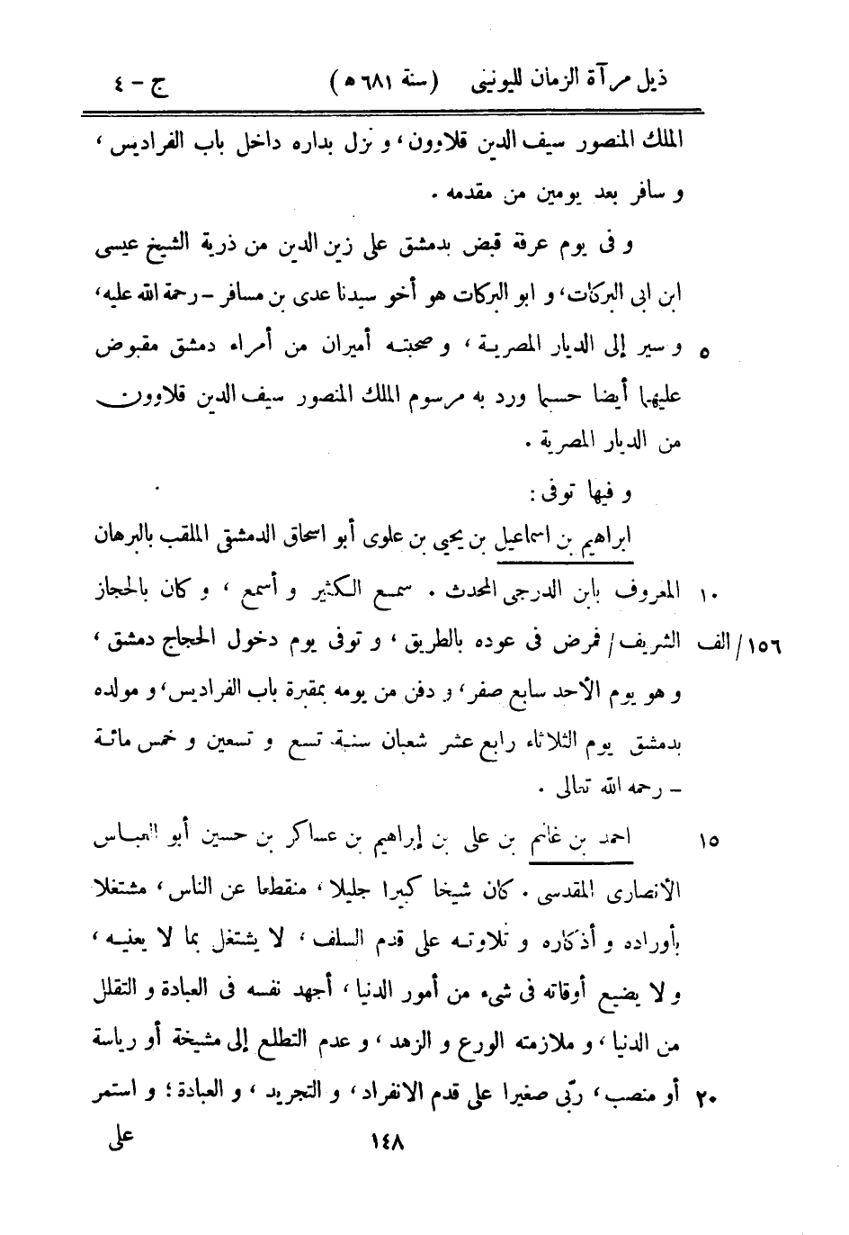 وفي يوم عرفة قبض بدمشق على زين الدين من ذرية الشيخ عيسى ابن أبي البركات، وأبو البركات هو أخو سيدنا عدى بن مسافر رحمة الله عليه، وسير إلى الديار المصرية، وصحبته أميران من أمراء دمشق مقبوض عليهما أيضاً حسبما ورد به مرسوم الملك المنصور سيف الدين قلاوون من الديار المصرية.