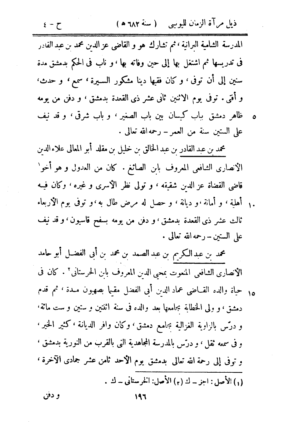 محمد بن عبد الكريم بن عبد الصمد بن محمد بن أبي الفضل أبو حامد الأنصاري الشافعي المنعوت بمحي الدين المعروف بابن الحرستاني. كان في حياة والده القاضي عماد الدين أبي الفضل مقيماً بصهيون مدة، ثم قدم دمشق، وولى الخطابة بجامعها بعد والده في سنة اثنتين وستين وست مائة، ودرس بالزاوية الغزالية بجامع دمشق، وكان وافر الديانة، كثير الخير، وفي سمعه ثقل، ودرس بالمدرسة المجاهدية التي بالقرب من النورية بدمشق، وتوفى إلى رحمة الله تعالى بدمشق يوم الأحد ثامن عشر جمادى الآخرة،