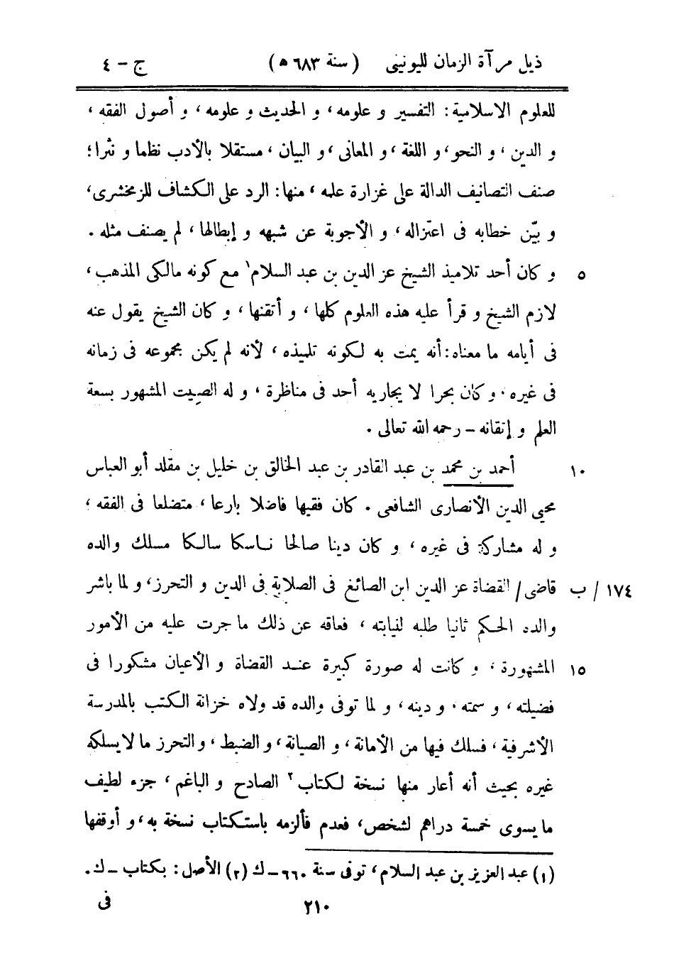 أحمد بن محمد بن عبد القادر بن عبد الخالق بن خليل بن مقلد أبو العباس محي الدين الأنصاري الشافعي. كان فقيهاً فاضلاً بارعاً، متضلعاً في الفقه، وله مشاركة في غيره، وكان ديناً صالحاً ناسكاً سالكاً مسلك والده قاضي القضاة عز الدين ابن الصائغ في الصلابة في الدين والتحرز، ولما باشر والده الحكم ثانياً طلبه لنيابته، فعاقه عن ذلك ما جرت عليه من الأمور المشهورة، وكانت له صورة كبيرة عند القضاة والأعيان مشكوراً في فضيلته، وسمته، ودينه، ولما توفى والده قد ولاه خزانة الكتب بالمدرسة الأشرفية، فسلك فيها من الأمانة، والصيانة، والضبط، والتحرز ما لا يسلكه غيره بحيث أنه أعار منها نسخة لكتاب الصادح والباغم، جزء لطيف ما يسوى خمسة دراهم لشخص، فعدم فألزمته باستكتاب نسخة به، وأوقفها