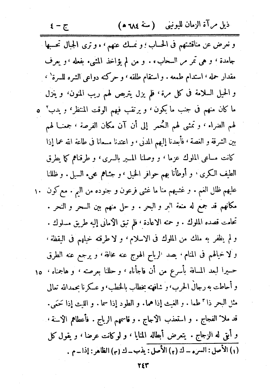 ونعرض عن مناقشتهم في الحساب؛ ونمسك عنهم، " وترى الجبال تحسبها جامدة، وهي تمر مر السحاب ". ومن لم يؤاخذ المشئ بفعله ويعرف مقدار حمله، استدام طعمه. واستقام طلقه، وحركته دواعي الشره للسرة، والحيل السلامة في كل مرة، فلم يزل يتربص لهم ريب المنون، وينزل ما كان منهم في جنب ما يكون، ويرتقب فيهم الوقت المنتظر، ويدب لهم الضراء، وتمشي لهم الحمر إلى أن آن مكان الفرصة، جمعنا لهم بين الشرقة والغصة، فأبعدنا إليهم المدني، واعتدنا مسعانا في طاعة الله عما إذا كانت مساعي الملوك عزماً، ووصلنا المسير بالسرى، وطرقناهم كما يطرق الطيف الكرى، وأوطأنا بهم حوافر الخيل، وجئناهم مجيء السيل، وظللنا عليهم ظلل الغم. وغشيهم منا ما غشى فرعون وجنوده من أليم. مع كون مكانهم قد جمع له منعة البر والبحر. وحل منهم بين السحر والنحر. تحامت قصده الملوك. وحمته الإعادة، فلم تبق الأماني إليه طريق مسلوك. ولم يظفر به ملك من الملوك في الإسلام، ولا طرقته خيلهم في