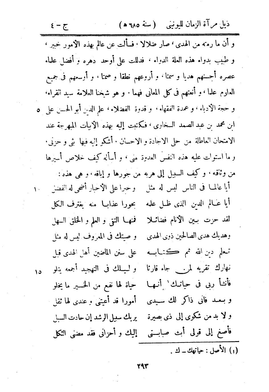 أيا عالماً في الناس ليس له مثل ... وحبراً على الأحبار أضحى له الفضل