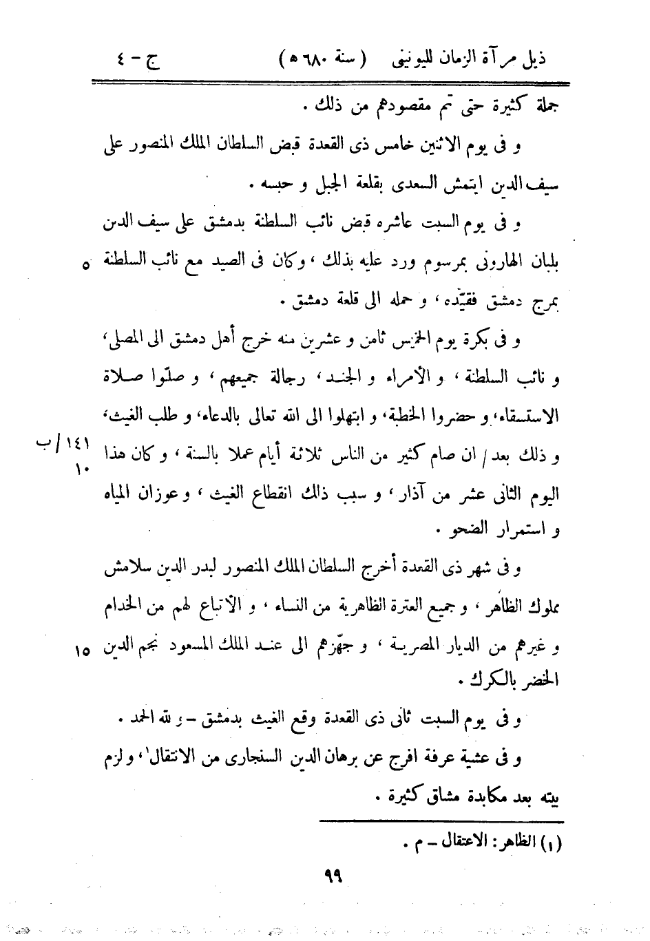 وفي يوم الاثنين خامس ذى القعدة قبض السلطان الملك المنصور على سيف الدين ايتمش السعدي بقلعة الجبل وحبسه.