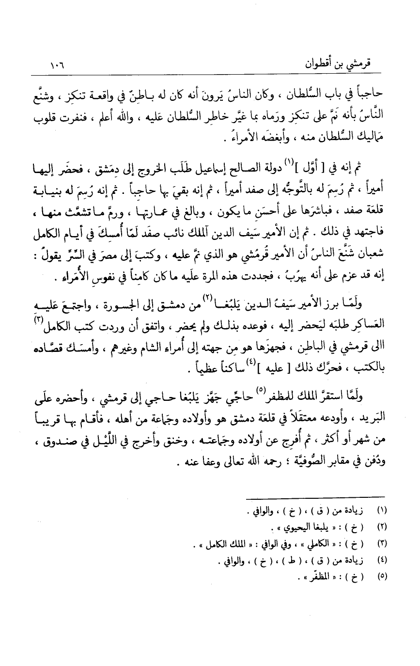 ولما برز الأمير سيف الدين يلبغا من دمشق إلى الجسورة، واجتمع عليه العساكر طلبه ليحضر إليه، فوعده بذلك ولم يحضر، واتفق أن وردت كتب الكامل إلى قرمشي في الباطن، فجهزها هو من جهته إلى أمراء الشام وغيرهم، وأمسك قصاده بالكتب، فحرك ذلك عليه ساكناً عظيماً.