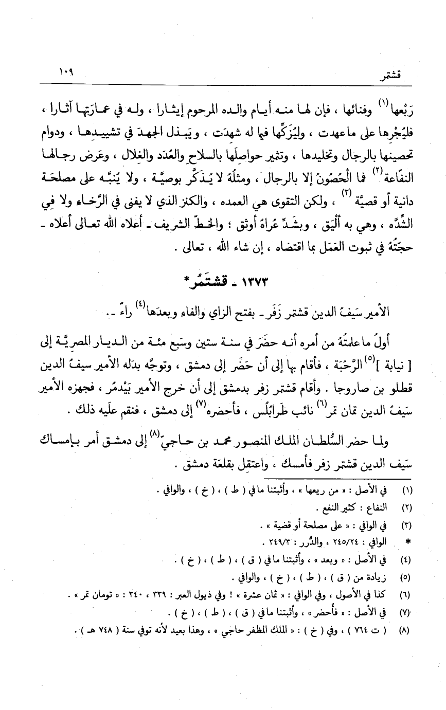 الأمير سيف الدين قشتمر زفر - بفتح الزاي والفاء وبعدها راء -.