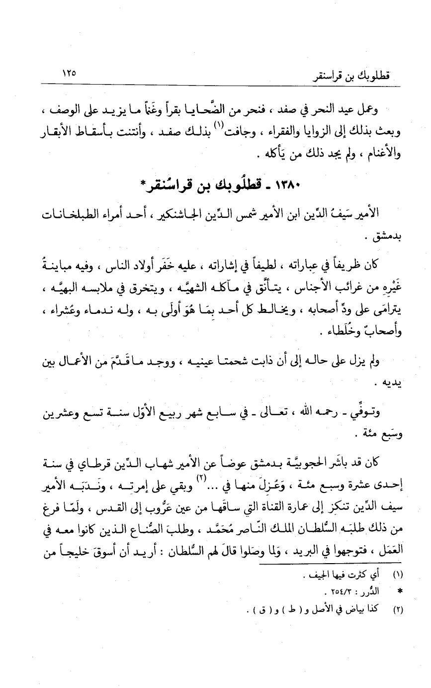 وعمل عيد النحر في صفد، فنحر من الضحايا بقراً وغنماً ما يزيد على الوصف، وبعث بذلك إلى الزوايا والفقراء، وجافت بذلك صفد، وأنتنت بأسقاط الأبقار والأغنام، ولم يجد ذلك من يأكله.