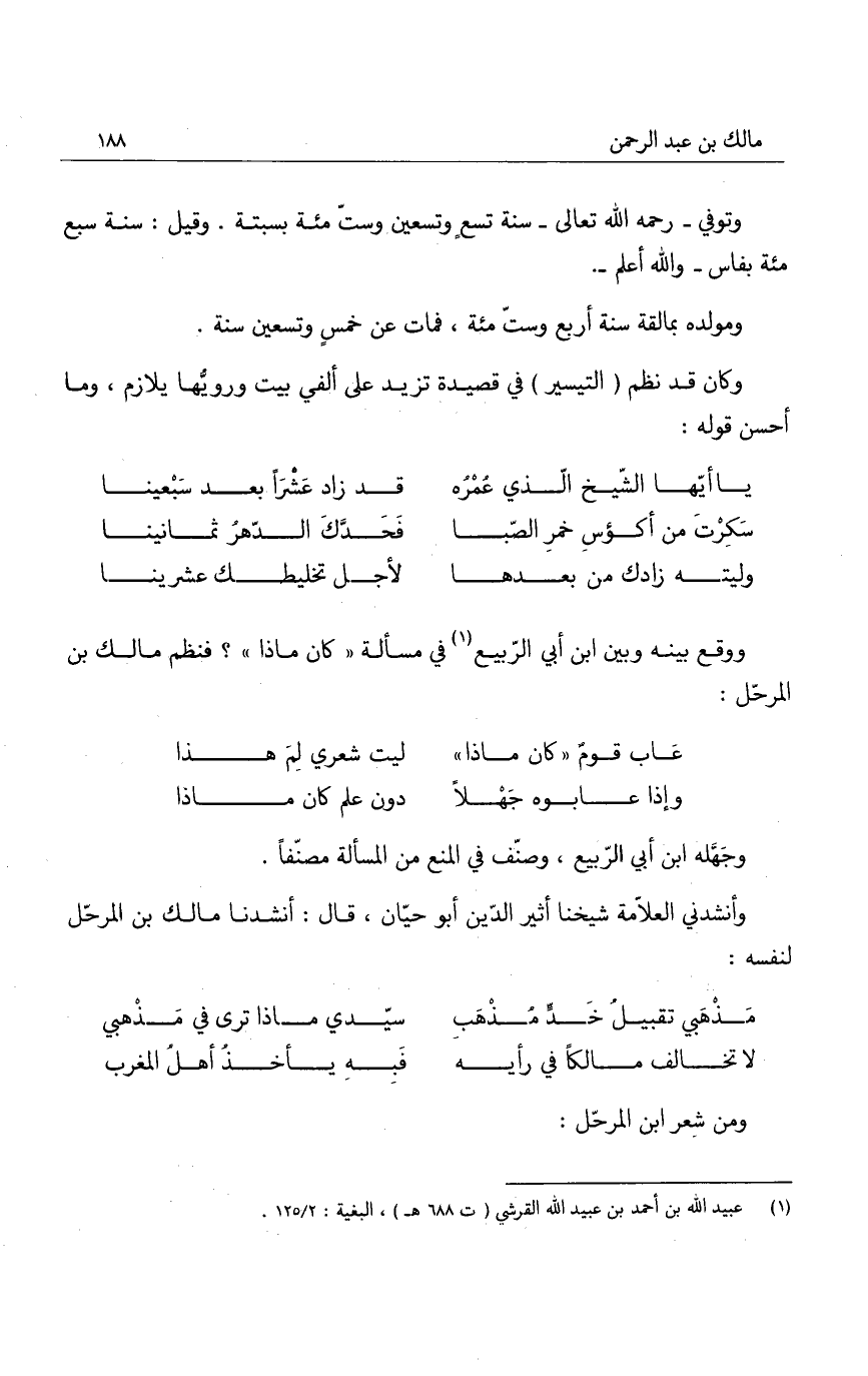 ووقع بينه وبين ابن أبي الربيع في مسألة " كان ماذا "؟ فنظم مالك بن المرحل: