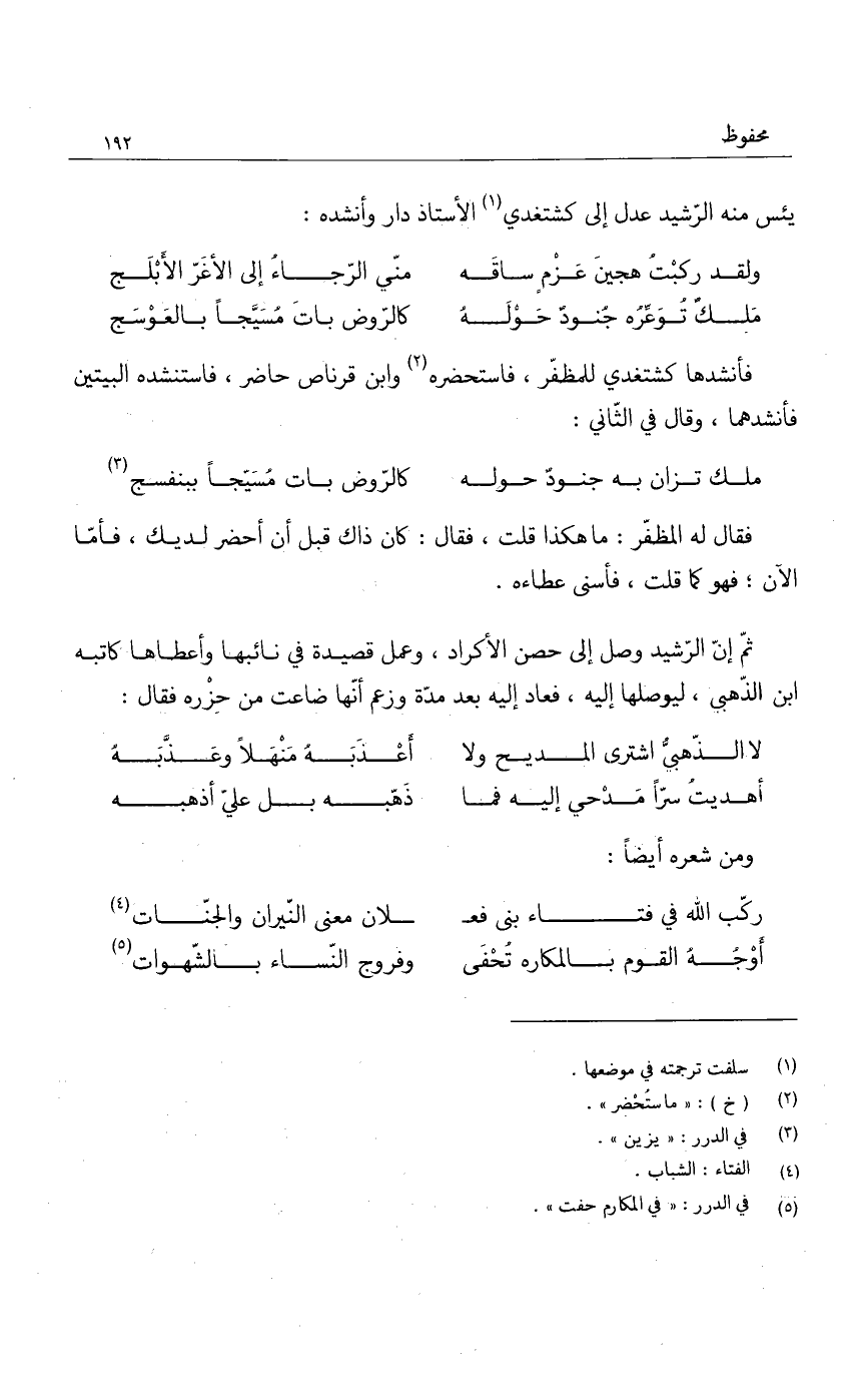 يئس منه الرشيد عدل إلى كشتغدي الأستاذ دار وأنشده: