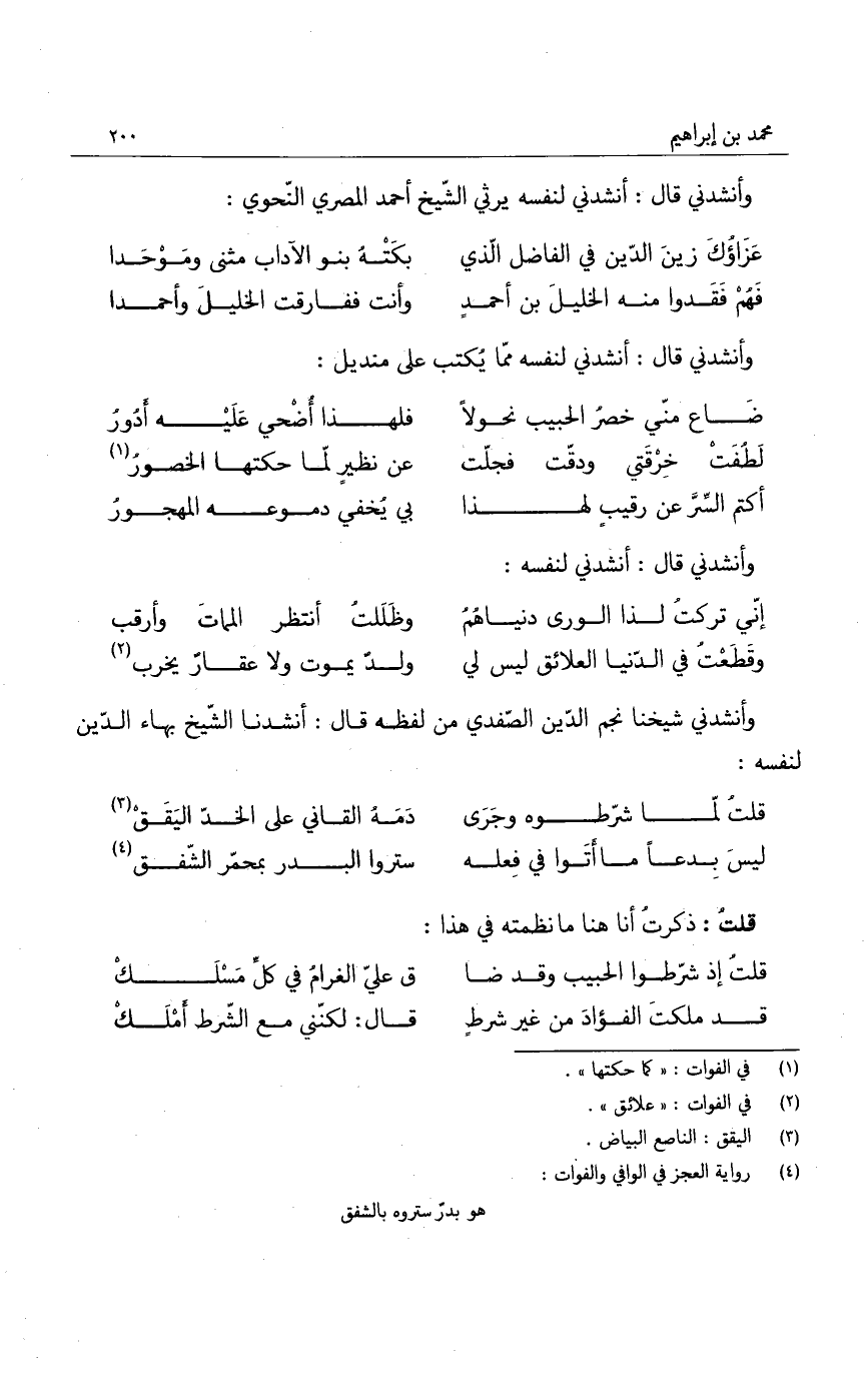وأنشدني قال: أنشدني لنفسه يرثي الشيخ أحمد المصري النحوي: