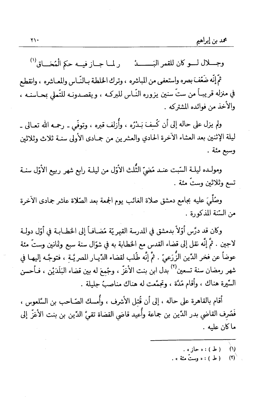 ولم يزل على حاله إلى أن كسف بدره، وأزلف قبره، وتوفي - رحمه الله تعالى - ليلة الاثنين بعد العشاء الآخرة الحادي والعشرين من جمادى الأولى سنة ثلاث وثلاثين وسبع مئة.