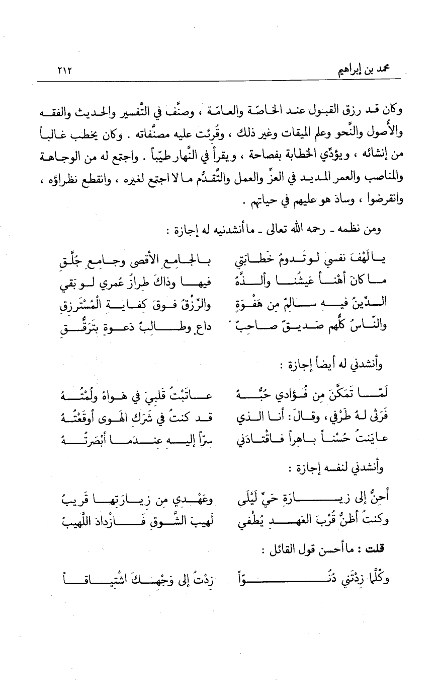 ومن نظمه - رحمه الله تعالى - ما أنشدنيه له إجازة: