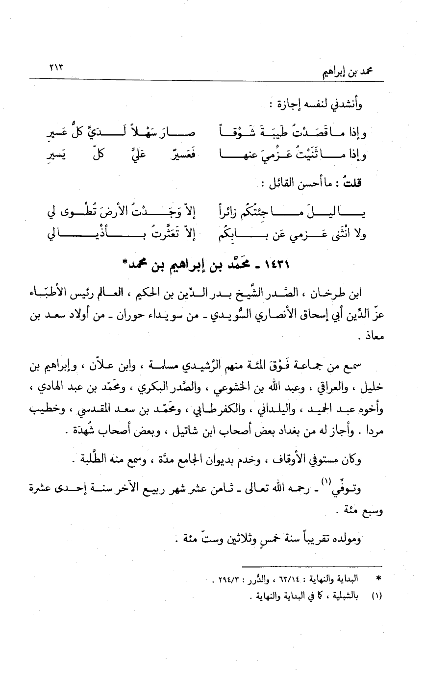 ابن طرخان، الصدر الشيخ بدر الدين بن الحكيم، العالم رئيس الأطباء عز الدين أبي إسحاق السويدي - من سويداء حوران - من أولاد سعد بن معاذ.