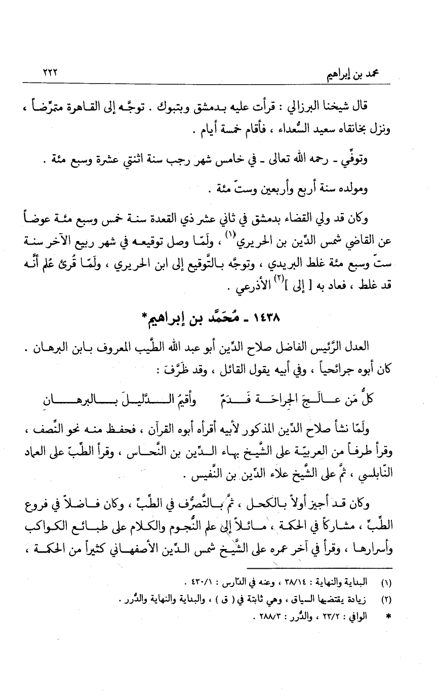 العدل الرئيس الفاضل صلاح الدين أبو عبد الله الطيب المعروف بابن البرهان. كان أبوه جرائحياً، وفي أبيه يقول القائل، وقد ظرف:
