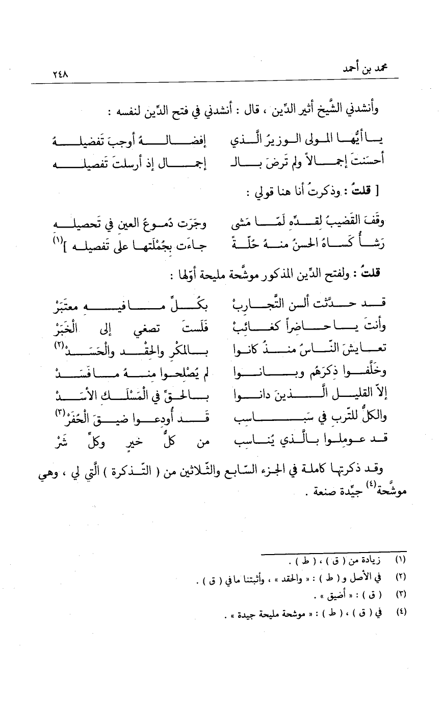 قلت: ولفتح الدين المذكور موشحة مليحة أولها: