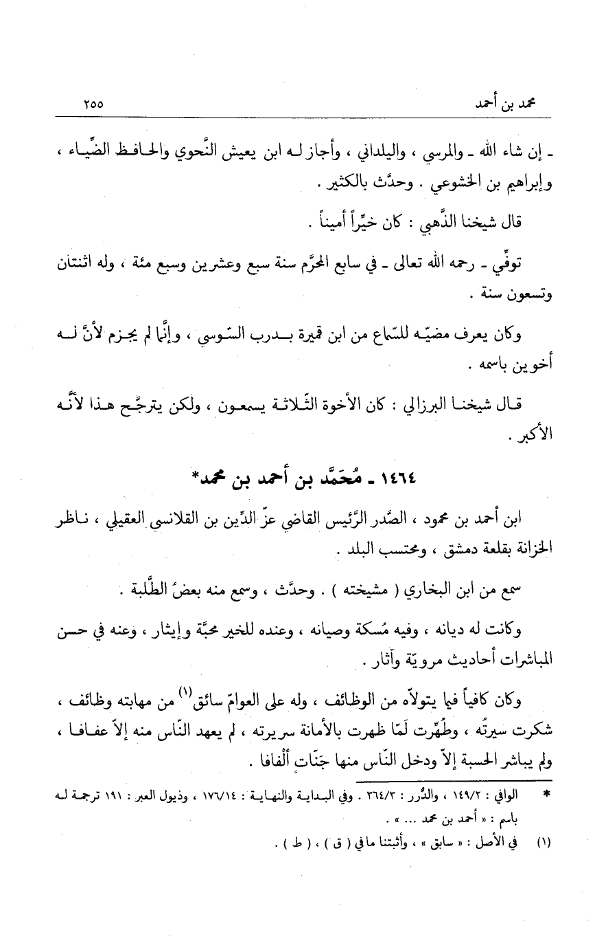 ابن أحمد بن محمود، الصدر الرئيس القاضي عز الدين بن القلانسي العقيلي، ناظر الخزانة بقلعة دمشق، ومحتسب البلد.