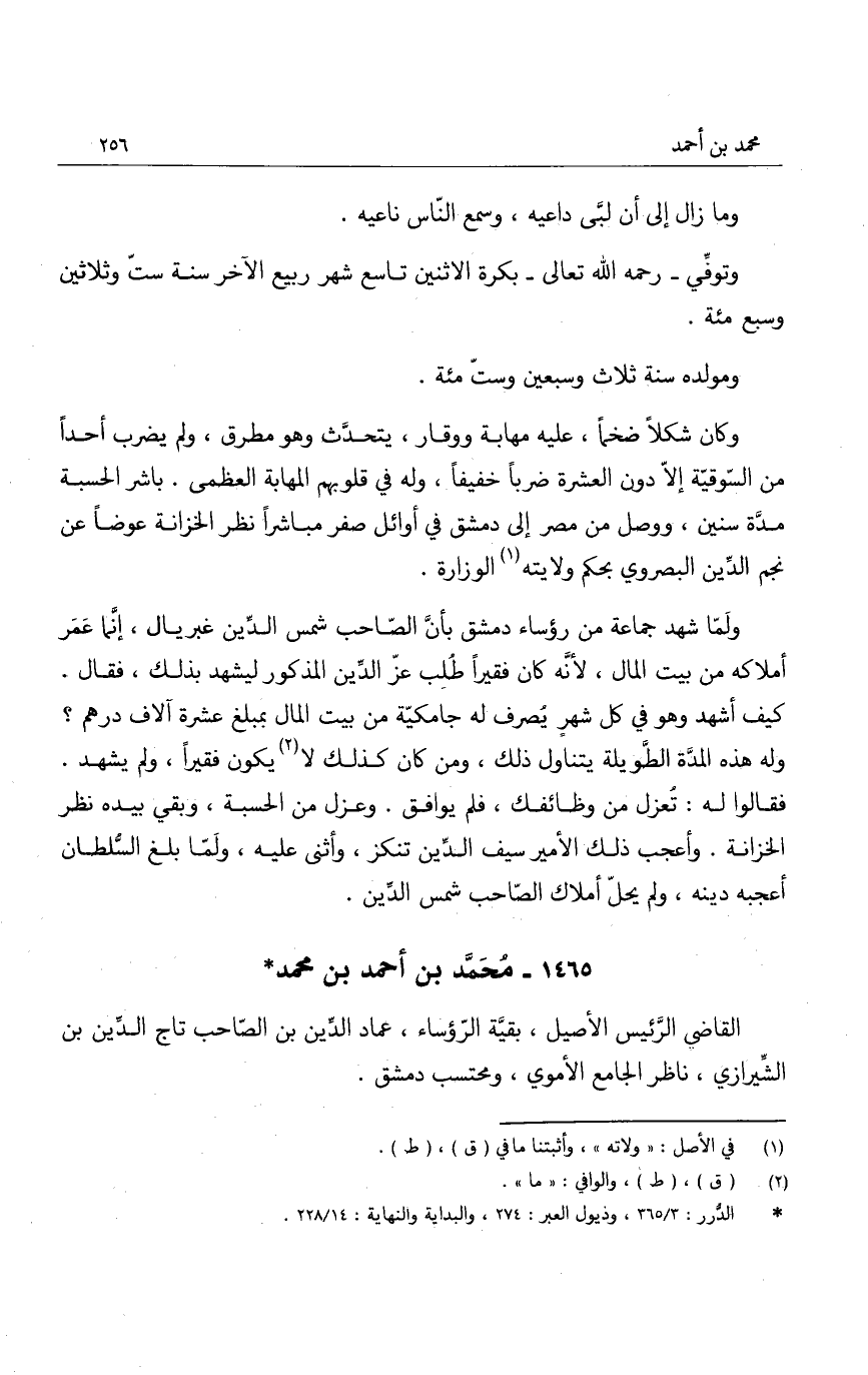 القاضي الرئيس الأصيل، بقية الرؤساء، عماد الدين بن الصاحب تاج الدين بن الشيرازي، ناظر الجامع الأموي، ومحتسب دمشق.