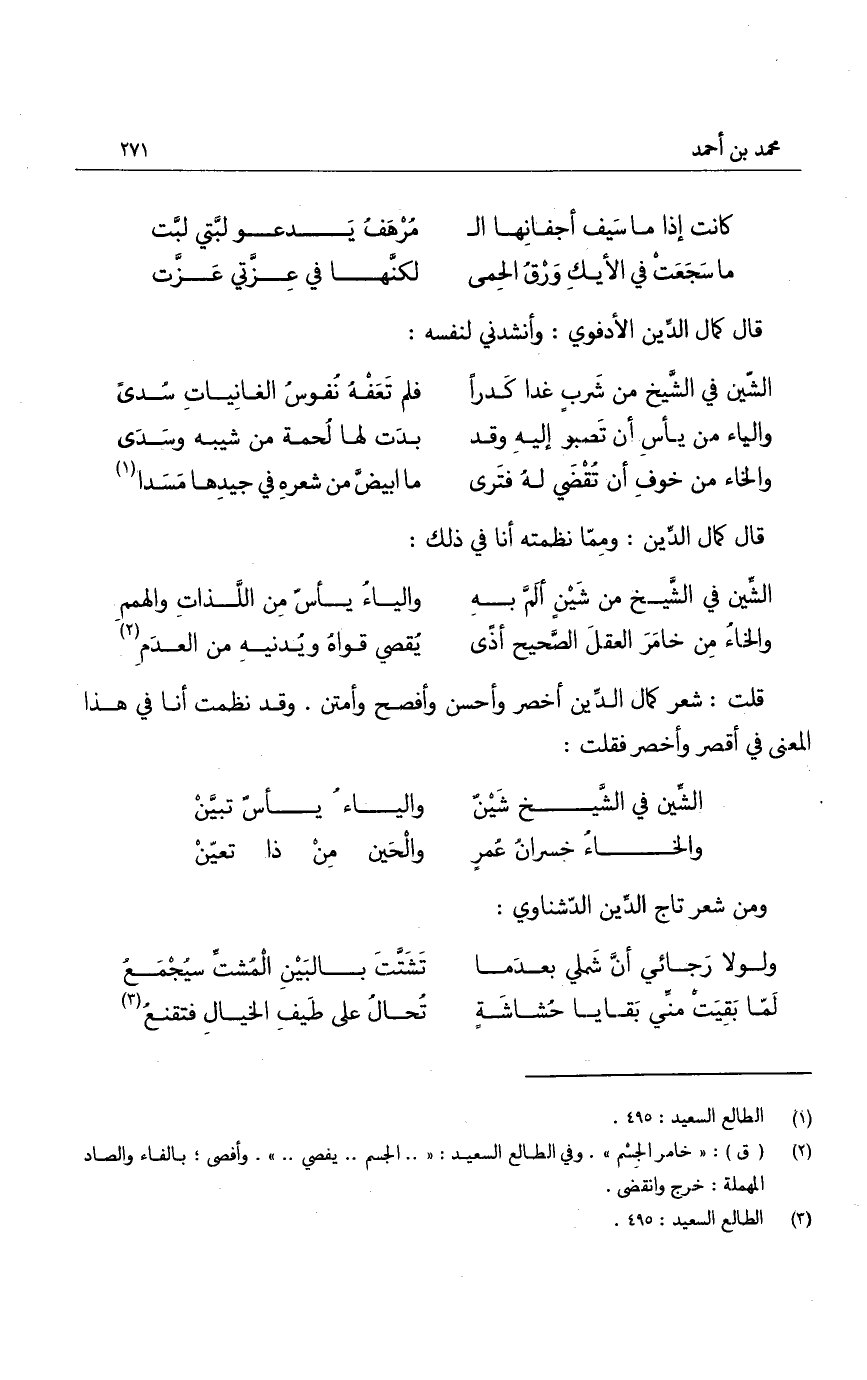 قال كمال الدين الأدفوي: وأنشدني لنفسه: