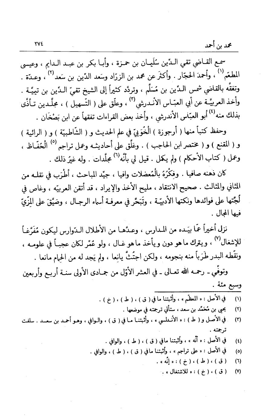 نزل أخيراً عما بيده من المدارس، وعدها من الأطلال الدوارس ليكون مفرغاً للإشغال، ويترك ما هو دون ويأخذ ما هو غال، ولو عمر لكان عجباً في علومه، ونقطه البدر طرباً منه بنجومه، ولكن اجتث يانعا، ولم يجد له من الحمام مانعا.