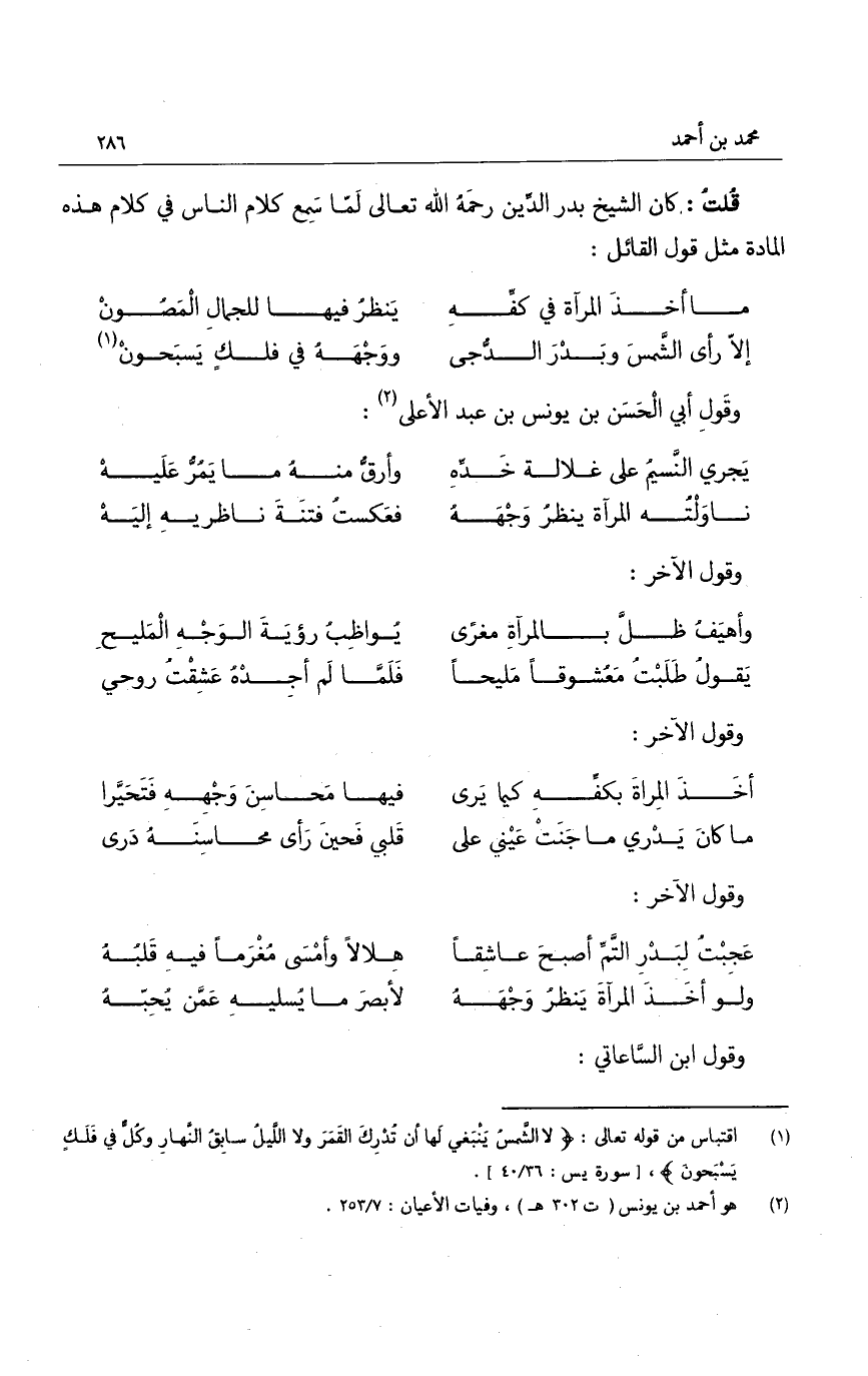 وقول ابن الساعاتي: