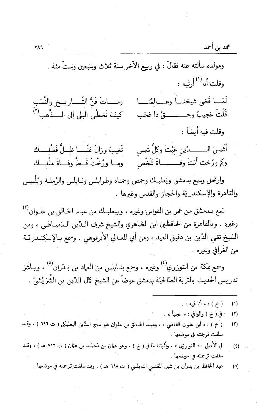 ومولده سألته عنه فقال: في ربيع الآخر سنة ثلاث وسبعين وست مئة.