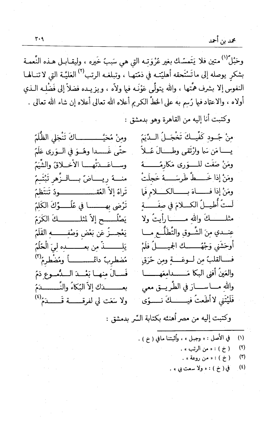 وكتبت أنا إليه من القاهرة وهو بدمشق: