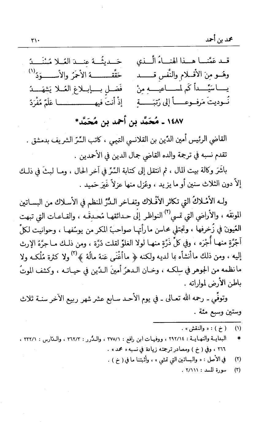 القاضي الرئيس أمين الدين بن القلانسي التميمي، كاتب السر الشريف بدمشق.