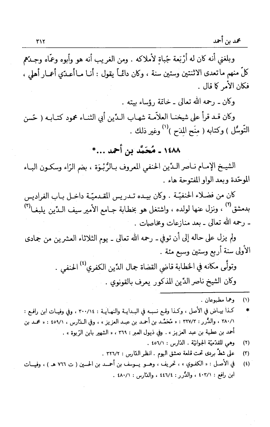 الشيخ الإمام ناصر الدين الحنفي المعروف بالربوة، بضم الراء وسكون الباء الموحدة وبعد الواو المفتوحة هاء.