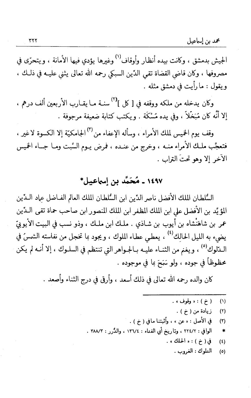 السلطان الملك الأفضل ناصر الدين ابن السلطان الملك العالم الفاضل عماد الدين المؤيد بن الأفضل علي ابن الملك المظفر ابن الملك المنصور ابن صاحب حماة تقي الدين عمر بن شاهنشاه بن أيوب بن شاذي. ملك ابن ملك، وذو نسب في البيت الأيوبي يضيء به الليل الحالك، يعطي عطاء الملوك، ويجود بما تخجل من نفاسته الشمس في الدلوك، ويغنم من الثناء عليه بالجواهر التي تنتظم في السلوك، إلا أنه لم يكن محظوظاً في جوده، ولو سمح بما في موجوده.