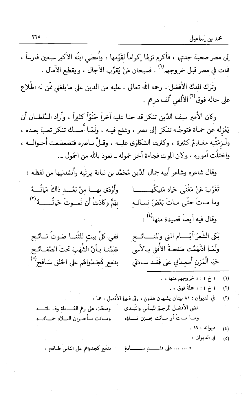 وقال شاعره وشاعر أبيه جمال الدين محمد بن نباتة يرثيه وأنشدنيها من لفظه: