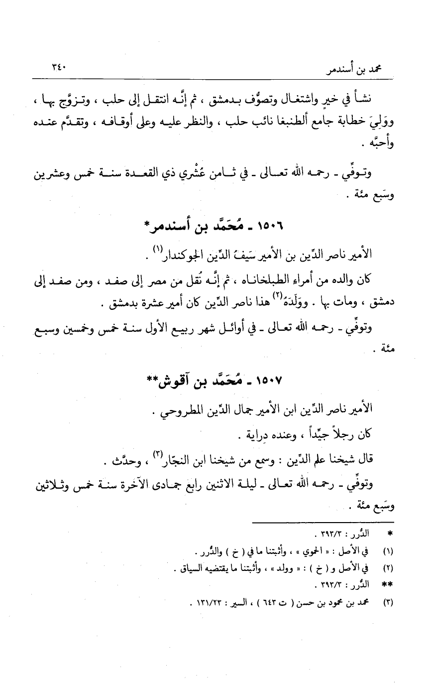 كان والده من أمراء الطبلخاناه، ثم إنه نقل من مصر إلى صفد، ومن صفد إلى دمشق، ومات بها. وولده هذا ناصر الدين كان أمير عشرة بدمشق.