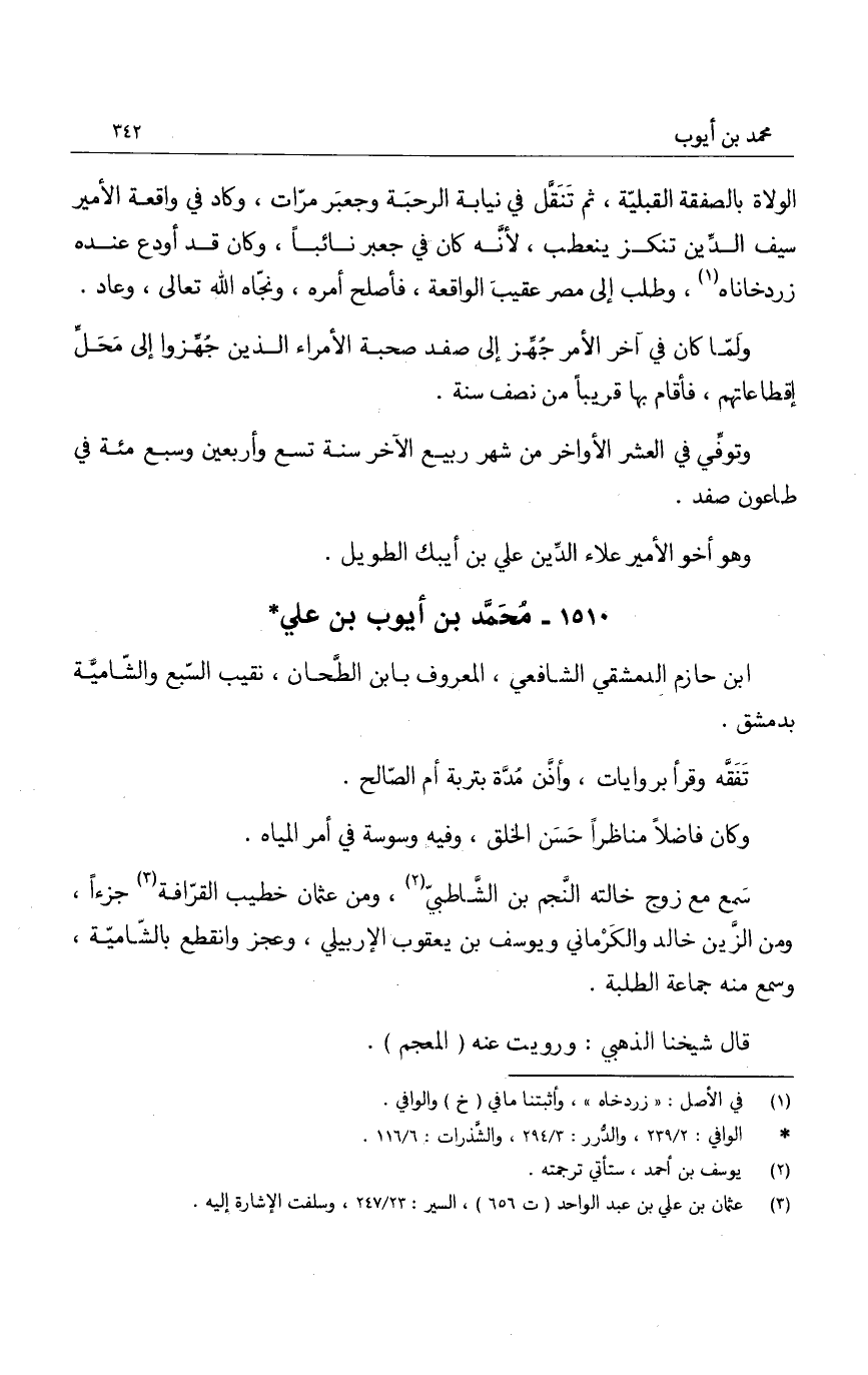 الولاة بالصفقة القبلية، ثم تنقل في نيابة الرحبة وجعبر مرات، وكاد في واقعة الأمير سيف الدين تنكز ينعطب، لأنه كان في جعبر نائباً، وكان قد أودع عنده زردخاناه، وطلب إلى مصر عقيب الواقعة، فأصلح أمره، ونجاه الله تعالى، وعاد.
