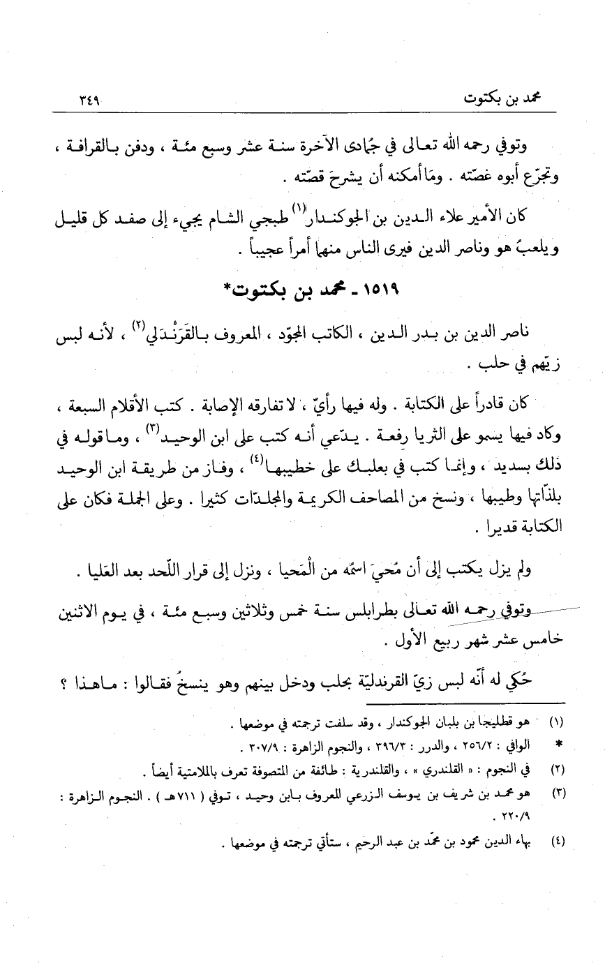 ناصر الدين بن بدر الدين، الكاتب المجود، المعروف بالقرندلي، لأنه لبس زيهم في حلب.