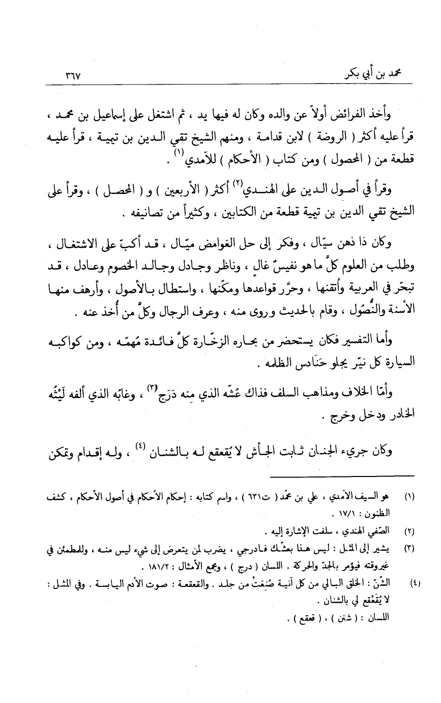 وقرأ في أصول الدين على الهندي أكثر " الأربعين " و" المحصل "، وقرأ على الشيخ تقي الدين بن تيمية قطعة من الكتابين، وكثيراً من تصانيفه.