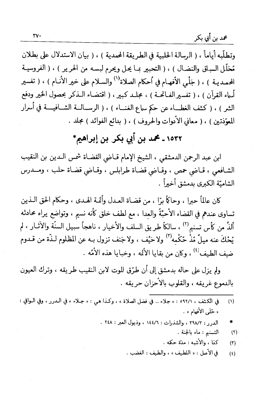 ابن عبد الرحمن الدمشقي، الشيخ الإمام قاضي القضاة شمس الدين بن النقيب الشافعي، قاضي حمص، وقاضي قضاة طرابلس، وقاضي قضاة حلب، ومدرس الشامية الكبرى بدمشق أخيراً.