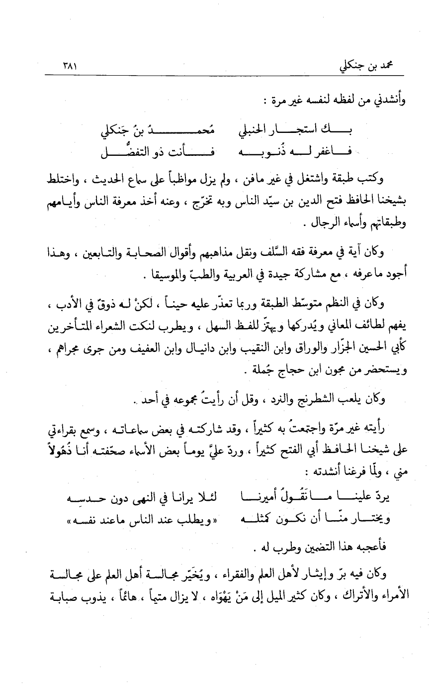 وكان يلعب الشطرنج والنرد، وقل أن رأيت مجموعه في أحد.