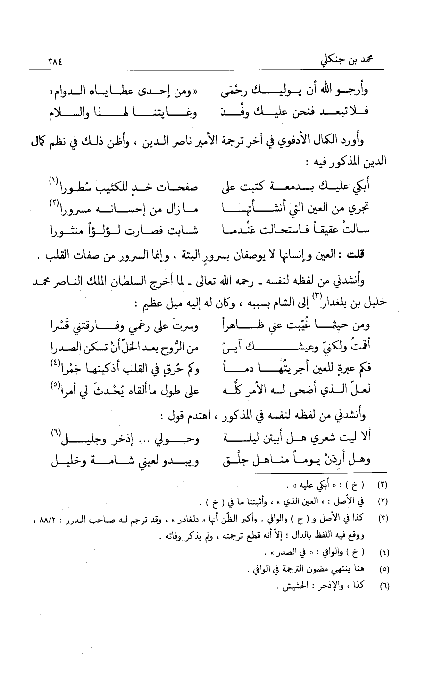 وأورد الكمال الأدفوي في آخر ترجمة الأمير ناصر الدين، وأظن ذلك في نظم كمال الدين المذكور فيه:
