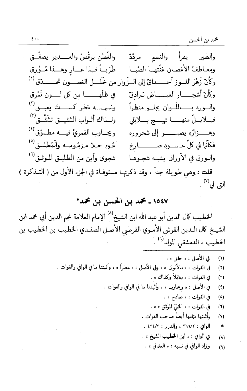الخطيب كمال الدين أبو عبد الله ابن الشيخ الإمام العلامة نجم الدين أبي محمد ابن الشيخ كمال الدين القرشي الأموي القرطبي الأصل الصفدي الخطيب بن الخطيب بن الخطيب، الدمشقي المولد.
