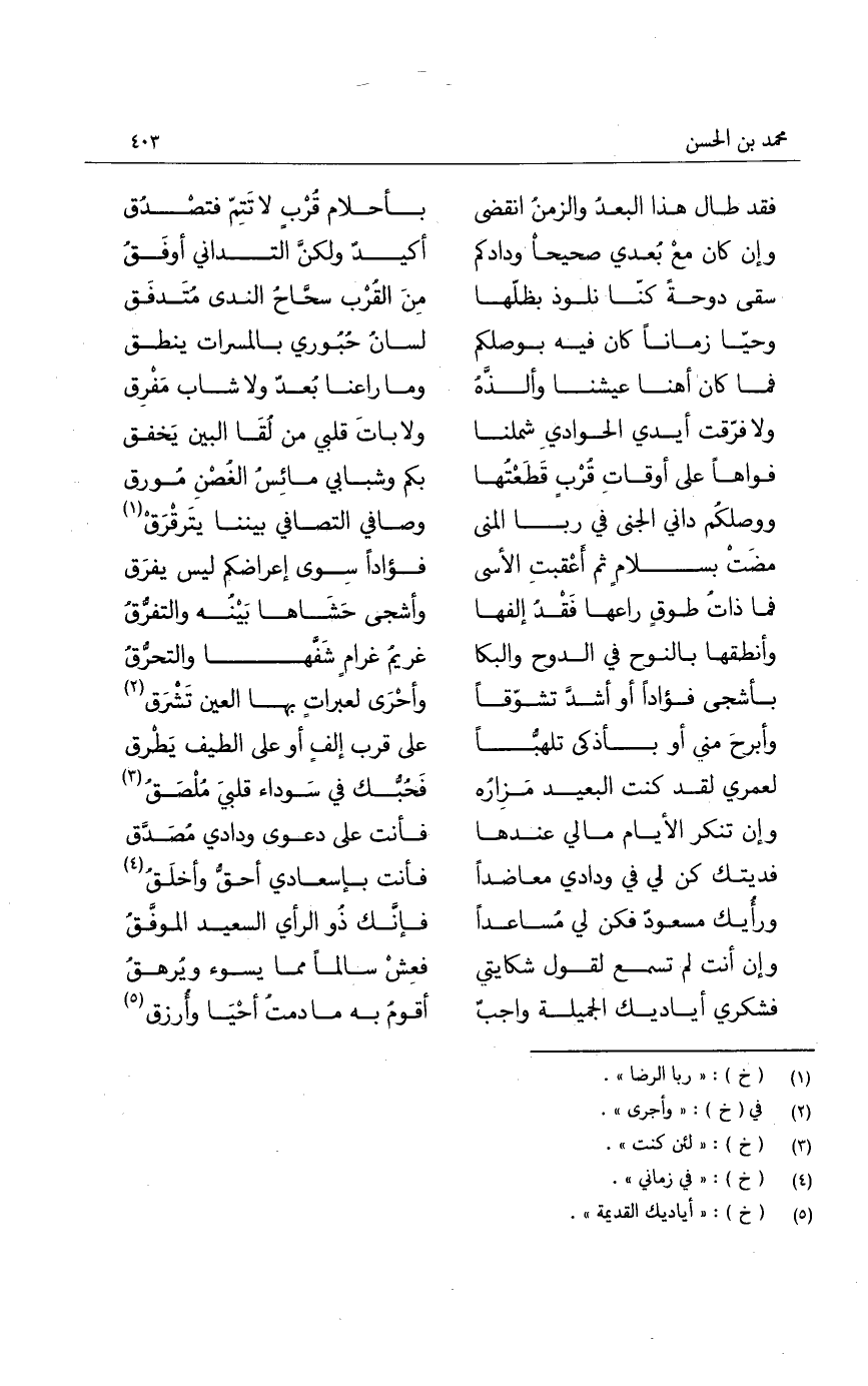 وإن كان مع بعدي صحيحاً ودادكم ... أكيد ولكن التداني أوفق