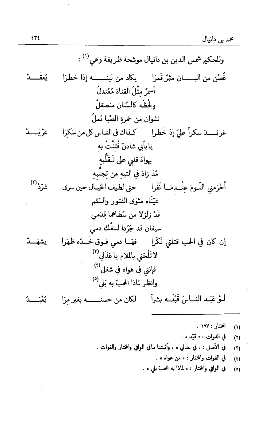 وللحكيم شمس الدين بن دانيال موشحة ظريفة وهي: