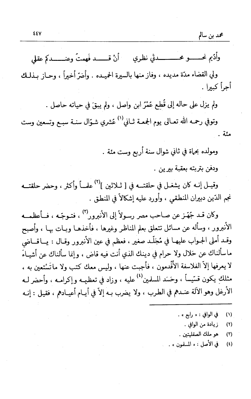 ولم يزل على حاله إلى أن قطع عمر ابن واصل، ولم يبق في حياته حاصل.