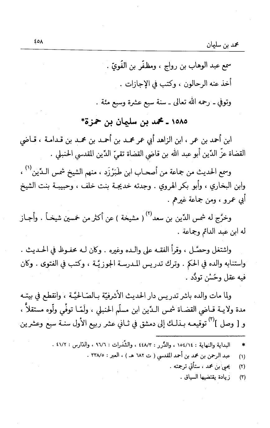 ابن أحمد بن عمر، ابن الزاهد أبي عمر محمد بن أحمد بن محمد بن قدامة، قاضي القضاة عز الدين أبو عبد الله بن قاضي القضاة تقي الدين المقدسي الحنبلي.