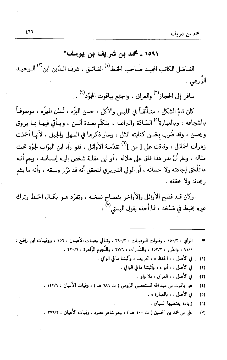الفاضل الكاتب المجيد صاحب الخط الفائق، شرف الدين ابن الوحيد الزرعي.