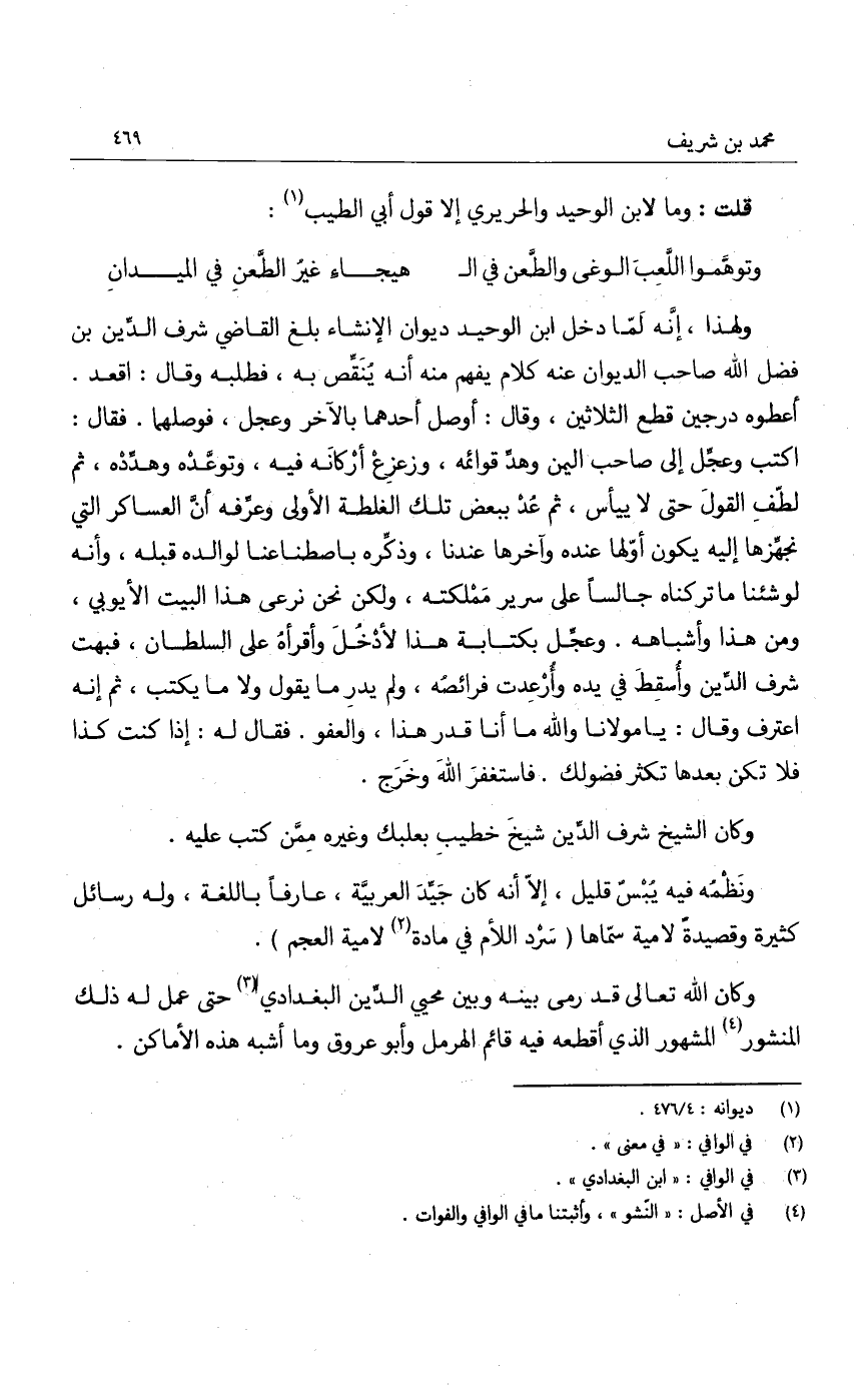 قلت: وما لابن الوحيد والحريري إلا قول أبي الطيب:
