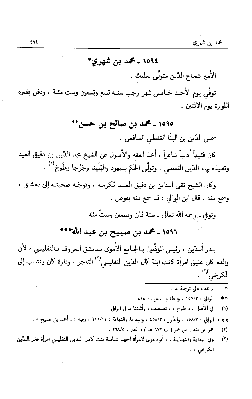 بدر الدين، رئيس المؤذنين بالجامع الأموي بدمشق المعروف بالتفليسي، لأن والده كان عتيق امرأة كانت ابنة كمال الدين التفليسي التاجر، وتارة كان ينتسب إلى الكرخي.