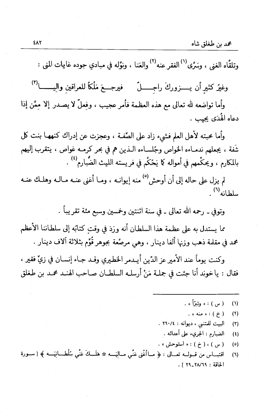 وكنت يوماً عند الأمير عز الدين أيدمر الخطيري وقد جاء إنسان في زي فقير، فقال: يا خوند أنا جئت في جملة من أرسله السلطان صاحب الهند محمد بن طغلق