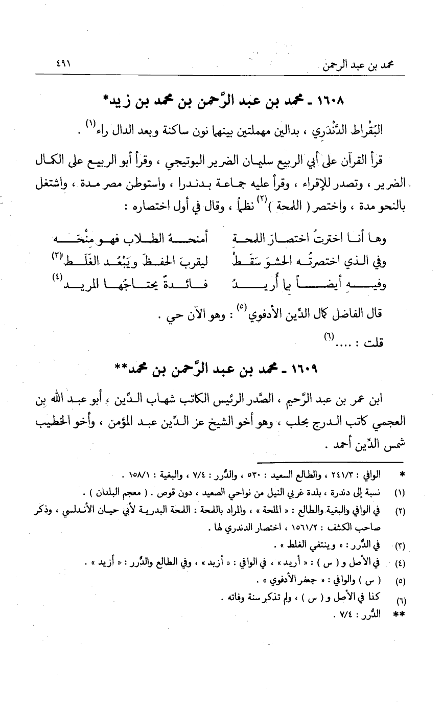 قرأ القرآن على أبي الربيع سليمان الضرير البوتيجي، وقرأ أبو الربيع على الكمال الضرير، وتصدر للإقراء، وقرأ عليه جماعة بدندرا، واستوطن مصر مدة واشتغل بالنحو مدة، واختصر " اللمحة " نظماً، وقال في أول اختصاره:
